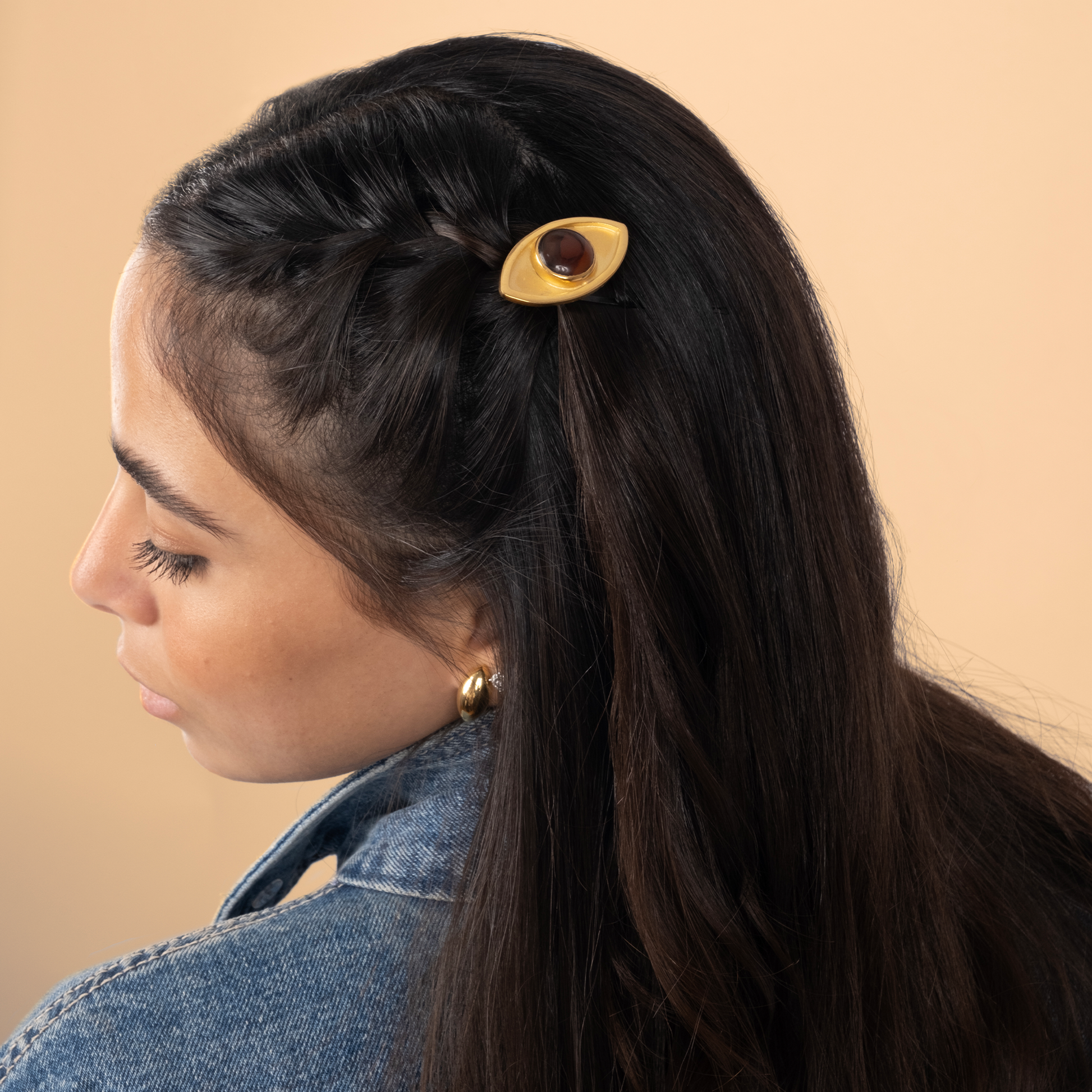 Introducing the Eye of Enchantment clip that features our eye symbol which will add a rich Arab touch to your hair. Adorned with a preciously chosen stone this accessory will add a subtle touch to your look that will sure turn heads.